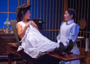 While the idea that female humans are in fact failed males is an old one (ancient Greece!), it is still very much in effect in In the Next Room or the vibrator play. Women in general were thought to be uniquely susceptible to nervous illness simply given the fact that they were female—their very biological makeup was thought to be responsible for an unreliable temperament and mental instability. Coupled with the scientific and cultural assumption that women only experienced sexual pleasure during penetration and male ejaculation, the pervasive authority of these ideas resulted in even the most basic understanding of female sexuality being at best severely misinformed and at worst non-existent.