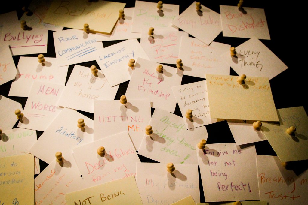 How do you let go of pain? Our third interactive activity in the Cardboard Piano lobby dug deep into the concept of forgiveness—how we hurt each other, and how we let go of that hurt.