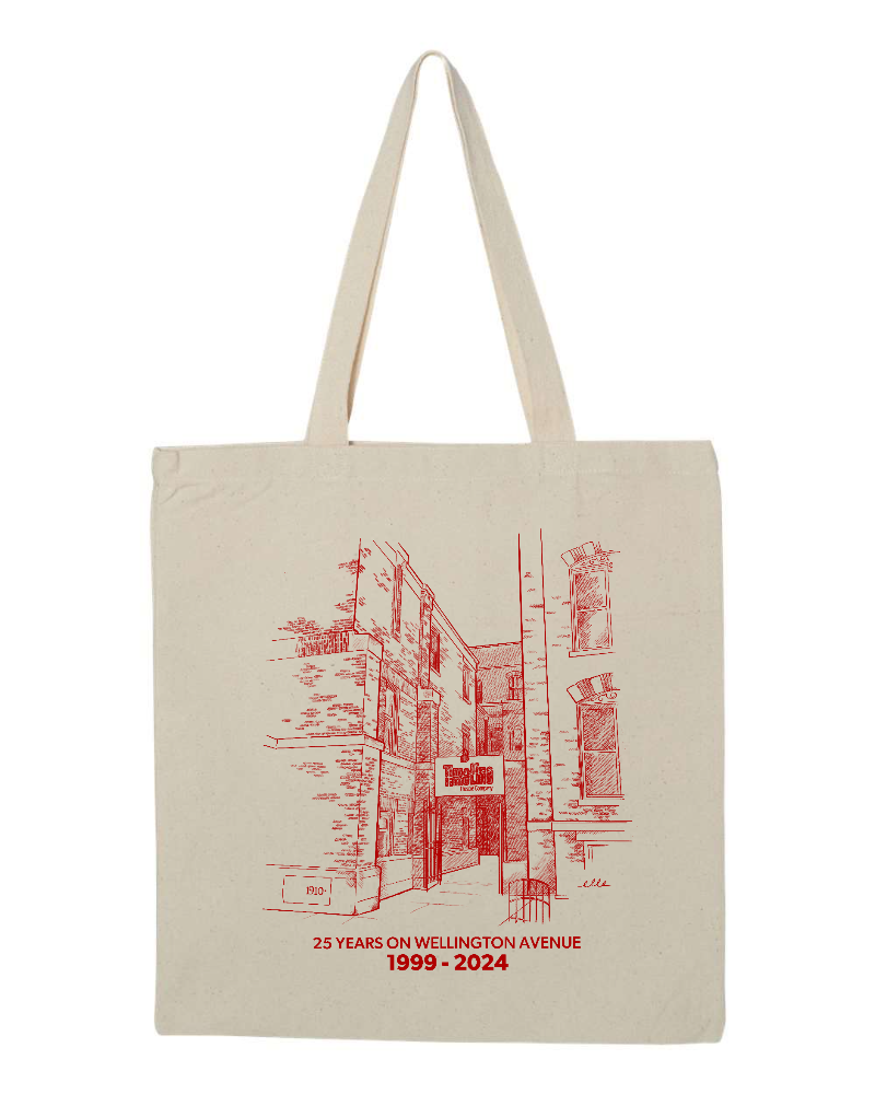Designed by Chicago-based costume designer and frequent TimeLine collaborator, Elle Erickson, this tote bag celebrating our 25 years at 615 W. Wellington Avenue can be yours if you donate $100 or more today.