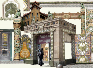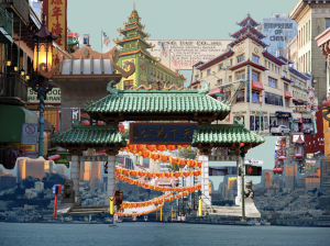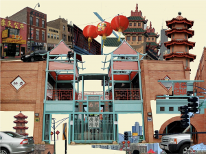 The story started in San Francisco, where the brutally targeted Chinese community invented a strange and exotic Chinatown, in order to protect their land. From the mid-1800s to early 1900, the racist housing policies of the city and the wide-spread hatred toward Chinese men forced the largest Chinese American community to be confined into a 15-square block downtown San Francisco. Then, in 1906, the situation further deteriorated as the city leaders planned to drive out the entire community to the south edge of the city, right after an earthquake had just burnt the neighborhood into ashes. In order to survive, the Chinese leaders proposed transforming Chinatown into a tourist attraction, magnifying its exotic elements to capture the public imagination. They hired American architects, who knew little of Asian architecture beyond stereotypical images of pagodas and temples with massive curved roofs and curled eaves, to build an oriental city. A new structural and decorative vocabulary thus grew from western fantasy: multi-tiered eaves simulating multi-storied pagodas, stone lions guarding the entrance, golden dragons coiling on the street façade. Chinatown then emerged from the earthquake as an “authentic ethnic preserve” filled with racial peculiarities and cultural oddities.