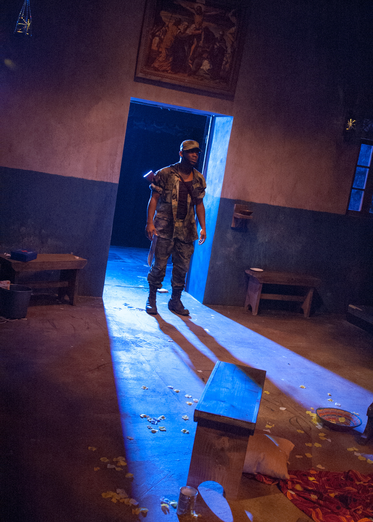 “A very carefully wrought play … Director Mechelle Moe’s production has a lot to like, not the least of which is a stunner of a set from Jeffrey D. Kmiec that constructs an entire sanctuary inside TimeLine’s space … It’s a beautiful piece of artistry, gorgeously lit by Brandon J. Wardell so that is reveals itself only gradually, morphing from a kind of war-zone hiding place to a place that might offer absolution, if the right kinds of truth and reconciliation occurs within its walls. Powerful acting moments are present, too; they’re mostly the work of actors who’ve not been at this theater before. … It’s a very gutsy performance.”