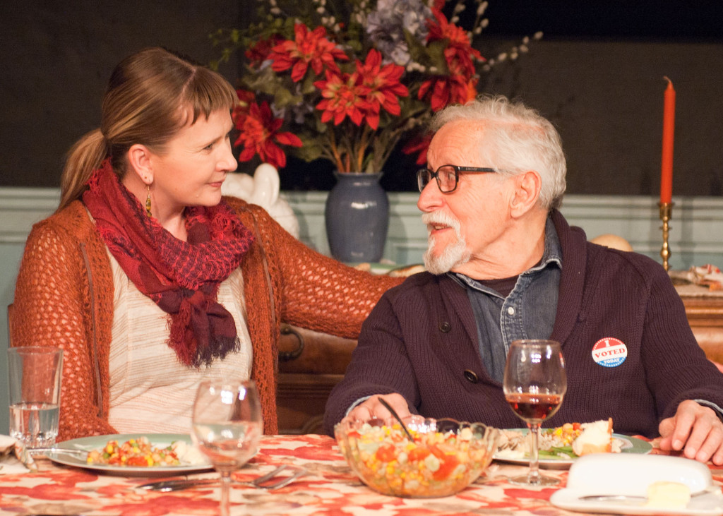 The Apple siblings (Juliet Hart, Janet Ulrich Brooks, Mechelle Moe and David Parkes), their Uncle Benjamin (Mike Nussbaum) and guest Tim (PJ Powers) discuss politics on the eve of the 2010 midterm elections in TimeLine's Chicago premiere of That Hopey Changey Thing, one of The Apple Family Plays. Video by The Stage Channel.