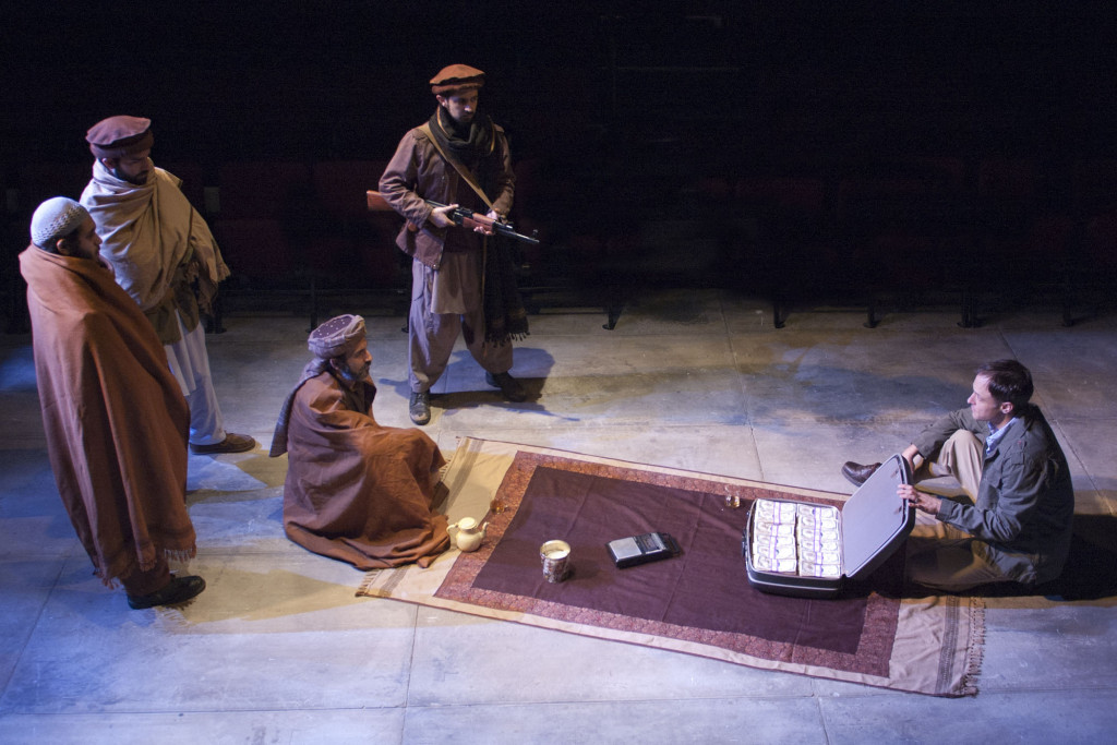As CIA operative James Warnock (Timothy Edward Kane) offers cash to his Afghan contact Abdullah Khan (Kareem Bandealy) in return for information and assistance, Saeed (Behzad Dabu) has further demands in TimeLine's Blood and Gifts. Video by The Stage Channel.