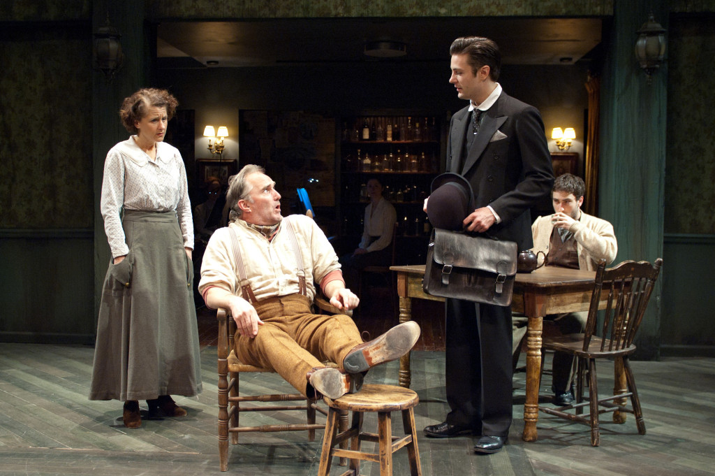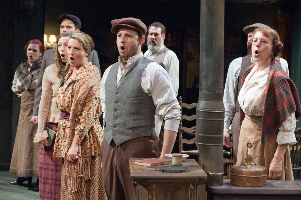 Juno (Marya Grandy) and company sing "On A Day Like This" in TimeLine Theatre's Chicago premiere production of the musical JUNO, book by Joseph Stein, music and lyrics by Marc Blitzstein, based on the play "Juno and the Paycock" by Sean O'Casey, directed by Nick Bowling with music direction by Doug Peck and Elizabeth Doran.