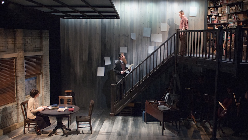 Asher Lev (Alex Weisman) struggles against the will of his parents (Danica Monroe and Lawrence Grimm) in his quest to become an artist in TimeLine Theatre Company's Chicago premiere of MY NAME IS ASHER LEV by Aaron Posner, adapted from the novel by Chaim Potok, directed by Kimberly Senior.