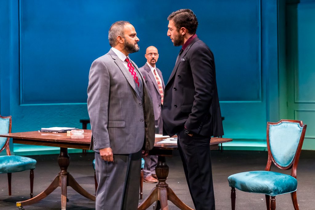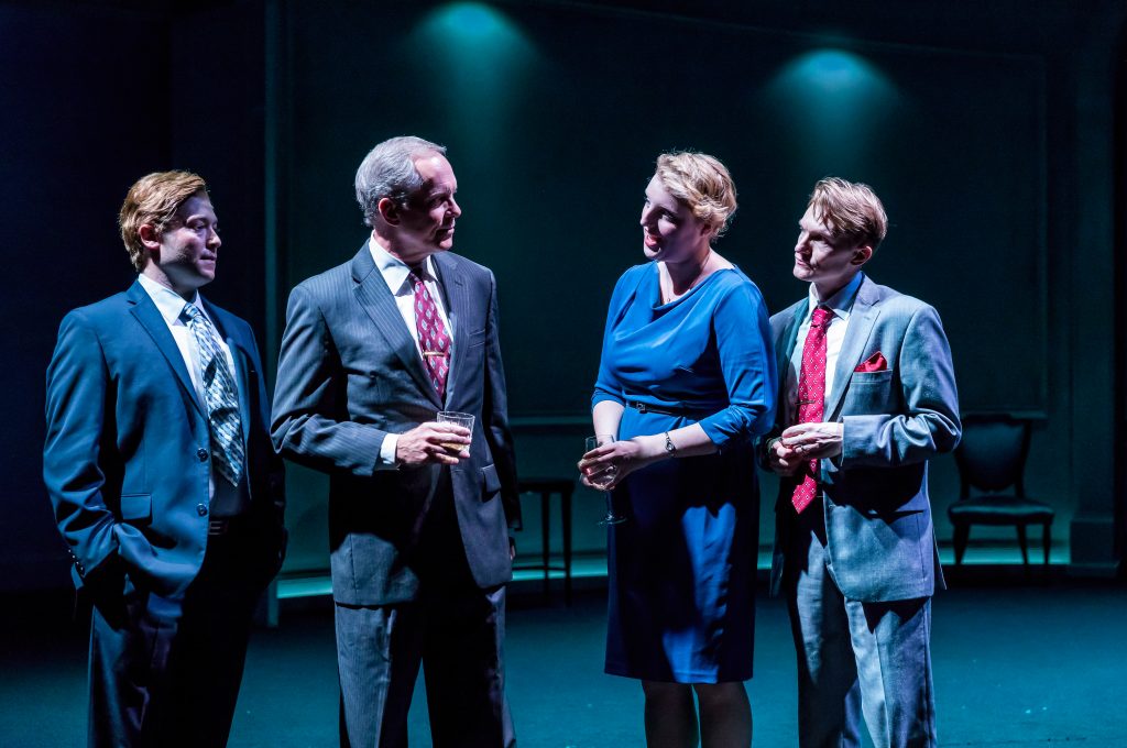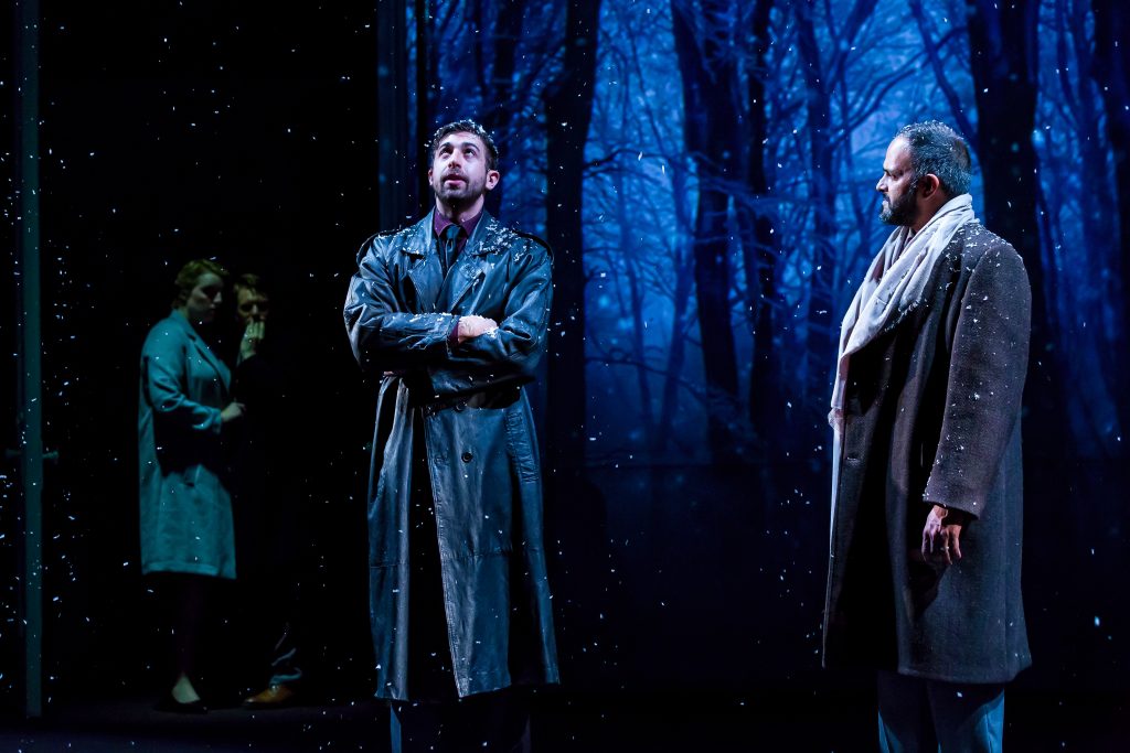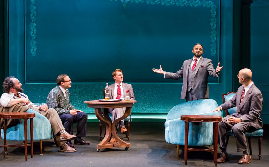 Take a sneak peek at a another scene from J.T. Rogers' award winning OSLO. Representatives from Israel and the PLO, Uri Savir (Jed Feder*) and Ahmed Qurie (Anish Jethmalani*), take a walk through the woods to clear their heads after a long day of negotiations while hosts Terje Rød-Larsen (Scott Parkinson*) and his wife Mona Juul (Bri Sudia*) look on with anticipation.