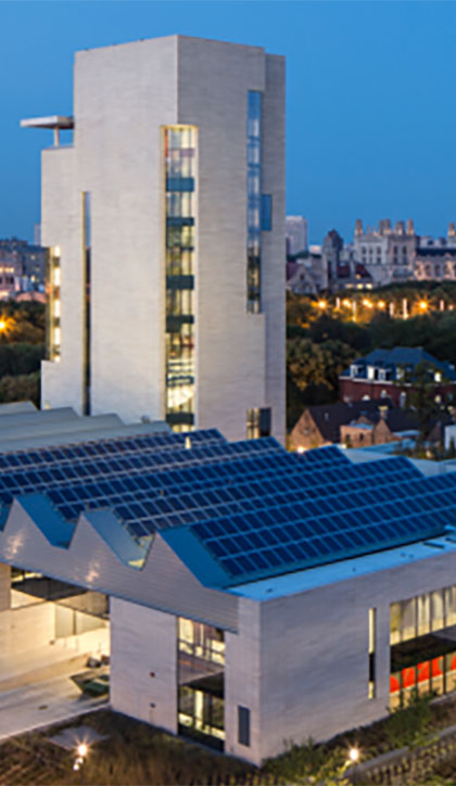 The Logan Center is located on the University of Chicago campus at 915 East 60th Street (at Drexel Avenue). The Logan Center’s north entrance is located on East 60th Street, and the south entrance can be accessed by a circular drive on South Drexel Avenue. Bike racks are located near the south entrance on East 60th Street.